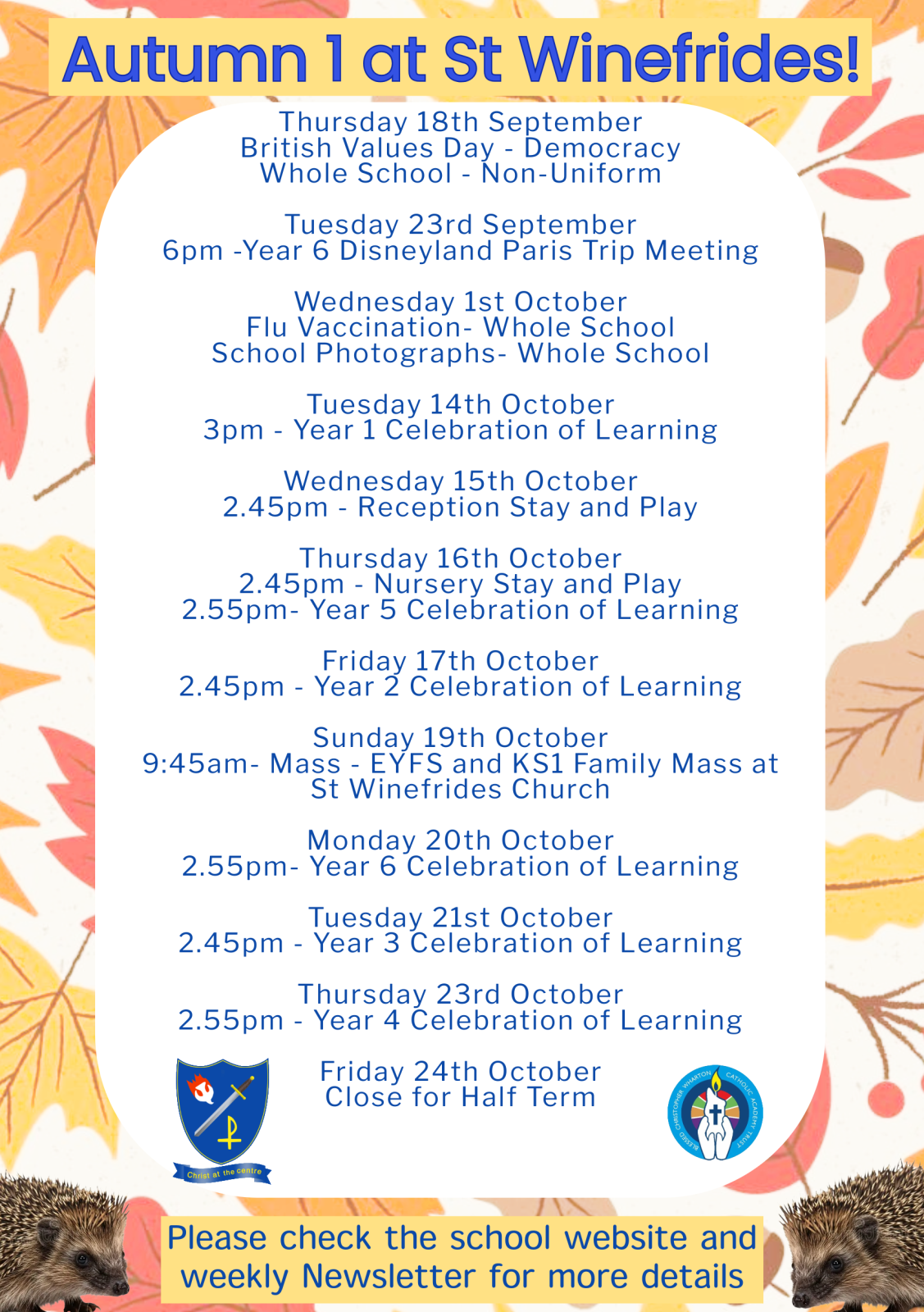 A warm welcome to all our students and parents - please see below poster detailing the main events scheduled for this half term: