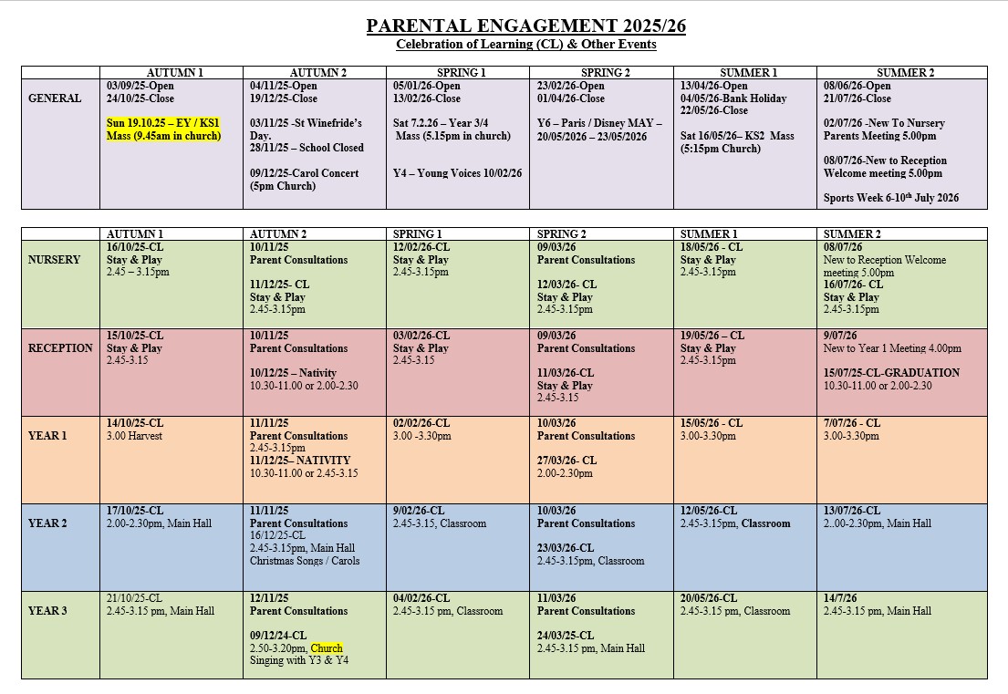 We are delighted to share with you our Parental Engagement Calendar for the 2025–2026 school year.